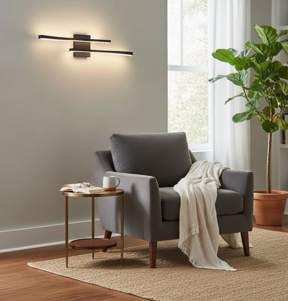 Quand tu veux un intérieur harmonieux, tu choisis des lignes nettes et une lumière qui ne fatigue pas. Cette applique diffuse un éclairage haut & bas agréable, qui met en valeur la matière du mur et donne une ambiance plus premium qu’un plafonnier classique.