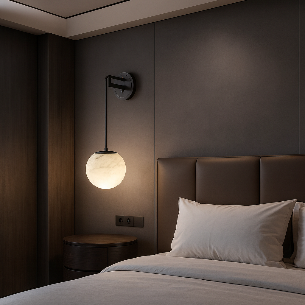 DEMANDER UN DEVISL’Applique Murale Arcane est une pièce design pensée pour sublimer instantanément un intérieur. Son globe en marbre lumineux crée une ambiance chaleureuse et élégante, tandis que sa fixation dorée apporte une touche moderne et sophistiquée.