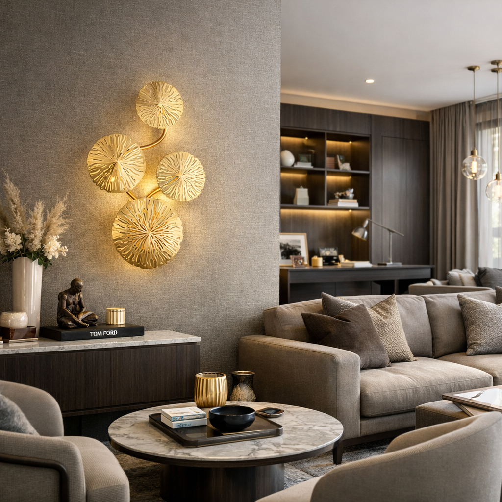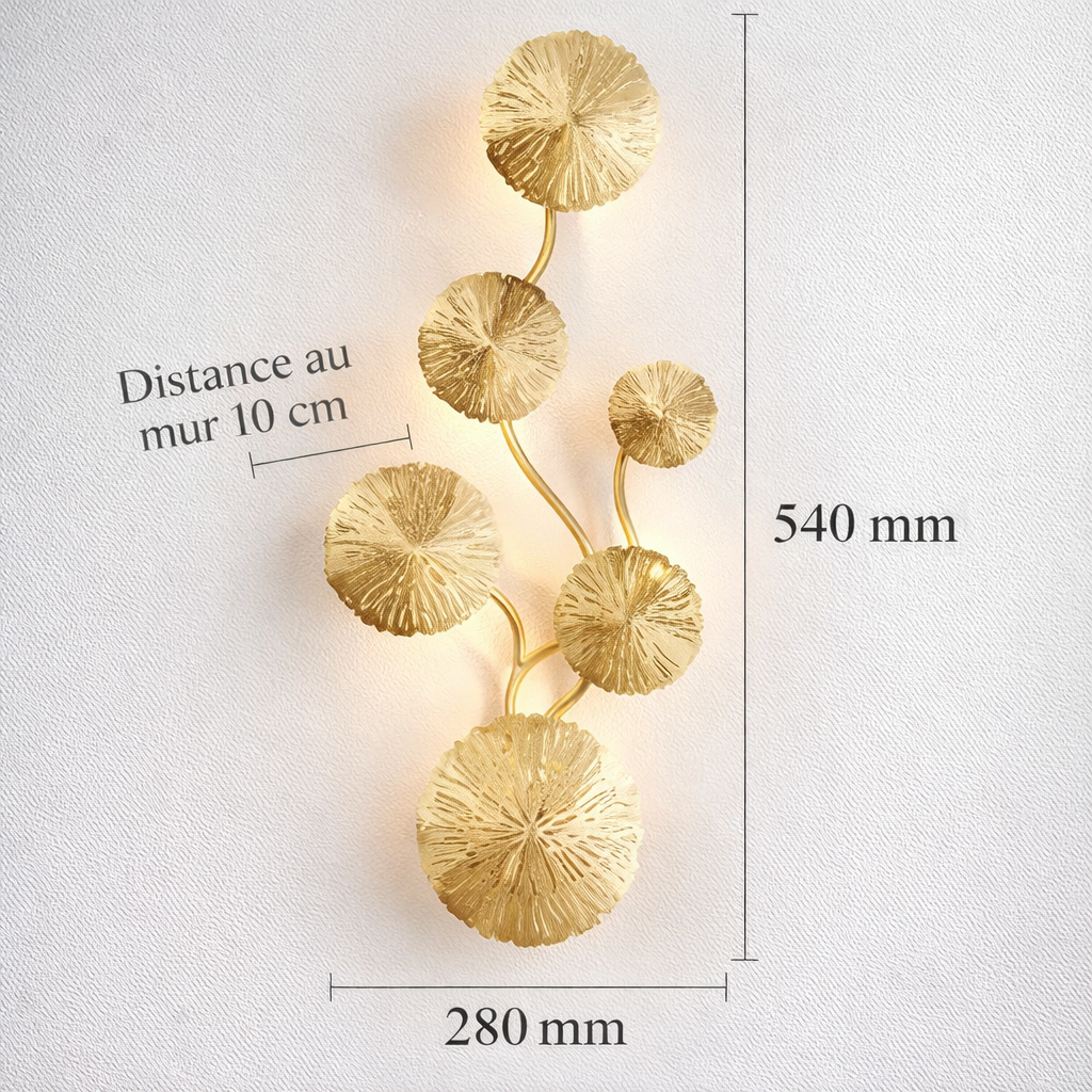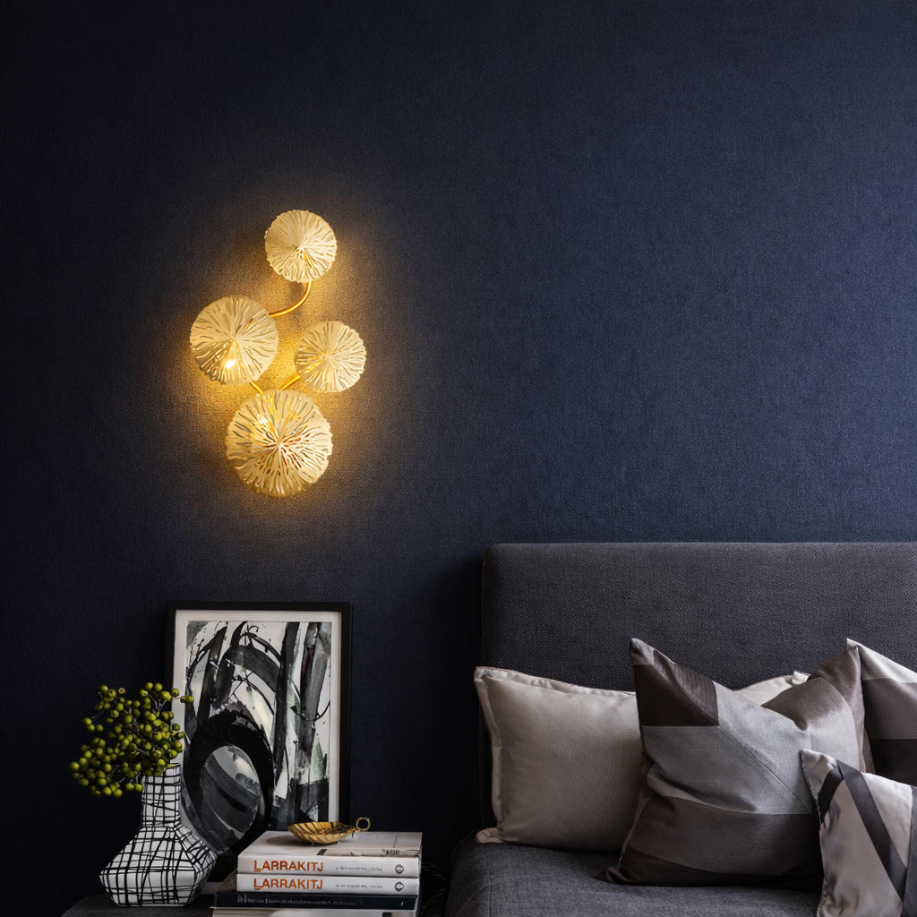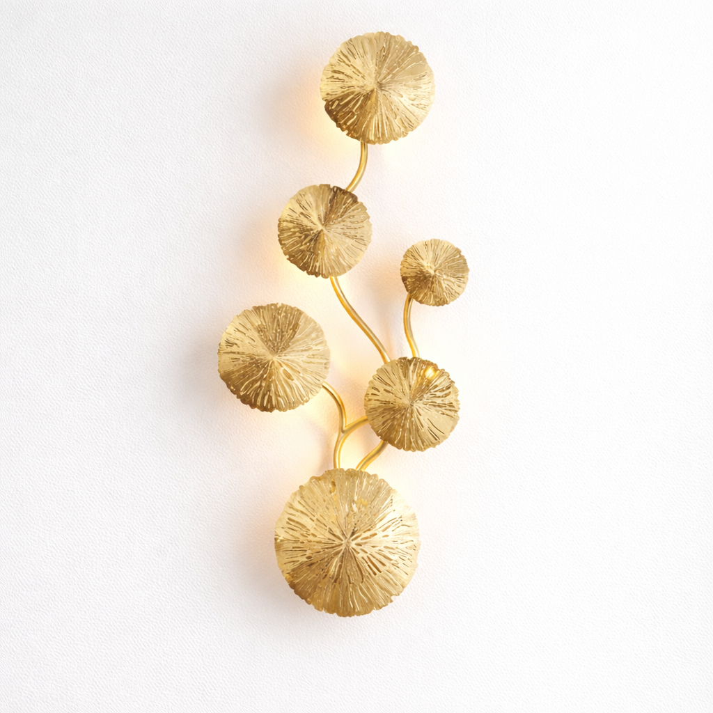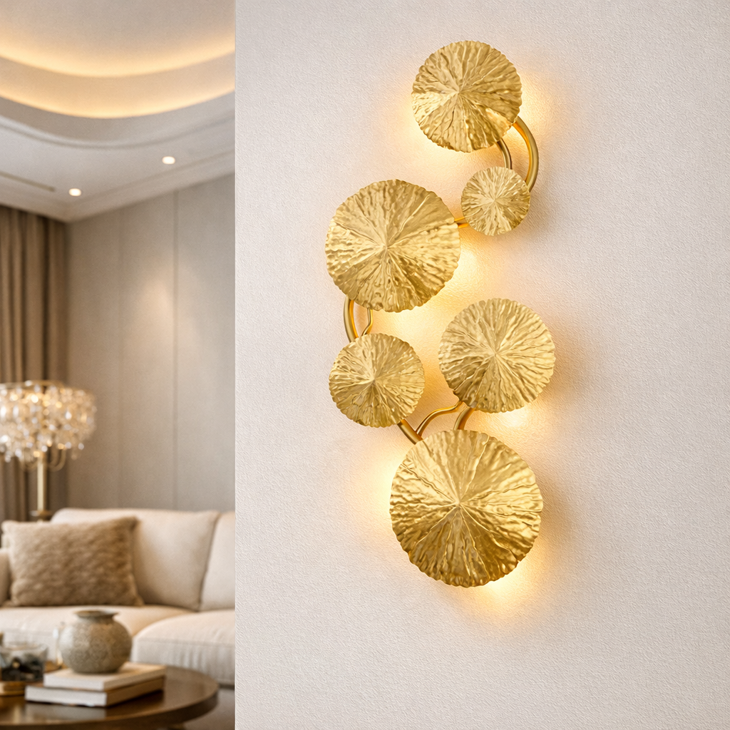 L'Applique Nymphéa redéfinit le luminaire mural avec une silhouette d'une poésie absolue. Inspirée par la délicatesse des feuilles de lotus, elle déploie une structure en fer forgé doré qui semble éclore sur vos parois. Chaque disque est travaillé avec une technologie d'ajourage créative, offrant un jeu d'ombres et de lumières texturées qui transforme instantanément l'atmosphère de votre pièce. Ce luminaire n'est pas qu'une simple source de lumière, c'est une pièce artistique haut de gamme qui apporte une touche de luxe "naturel" et de prestige à votre décoration intérieure.