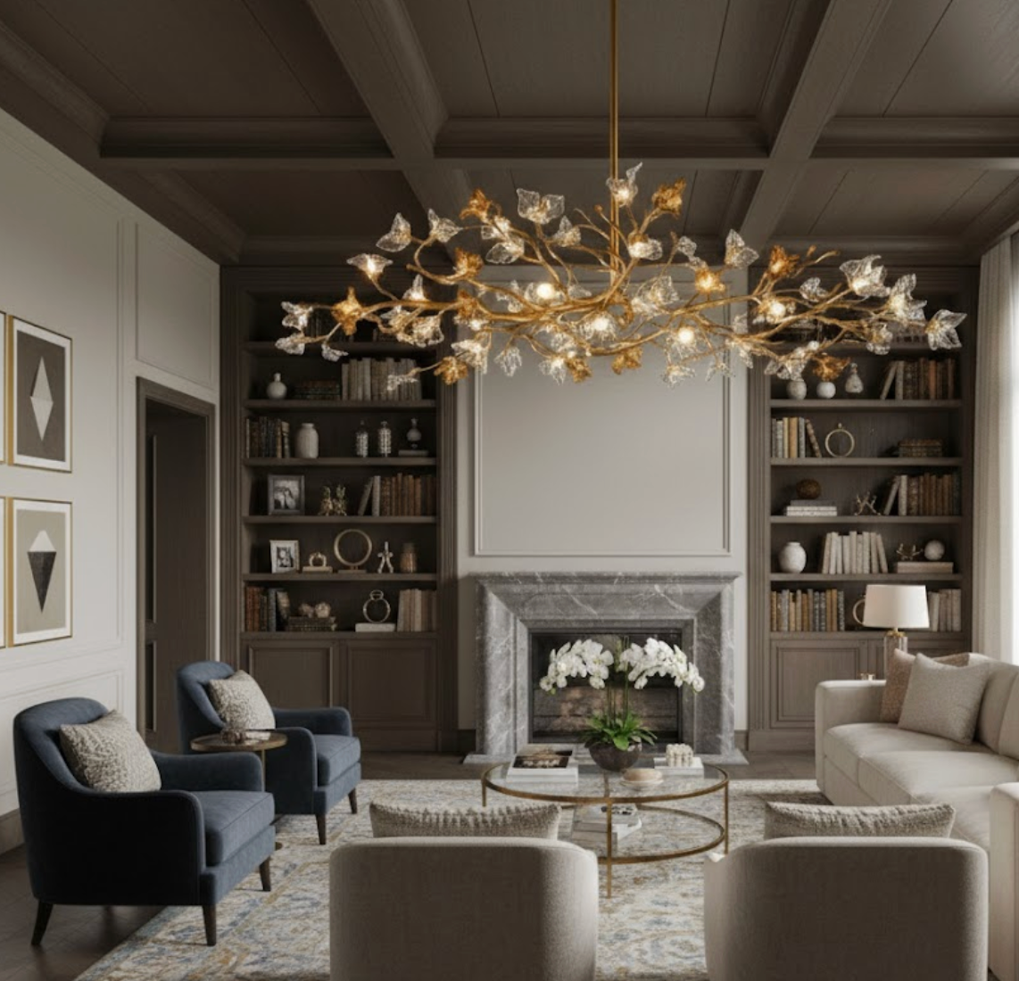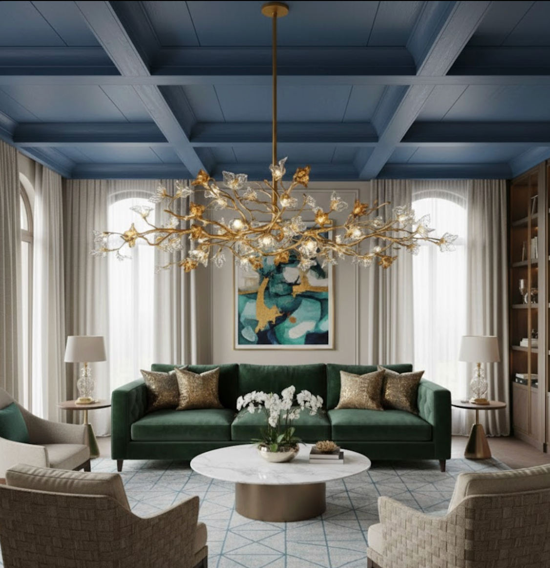 Le Lustre Branche Cuivre n’éclaire pas seulement : il habille l’espace. Sa structure en cuivre véritable, inspirée d’une branche en fleurs, apporte une présence sculpturale immédiatement visible, tandis que le verre soufflé diffuse une lumière chaleureuse et élégante. Au-dessus d’une table, d’un îlot ou au cœur d’un salon, il devient la pièce maîtresse qui donne du caractère et une vraie signature décorative.