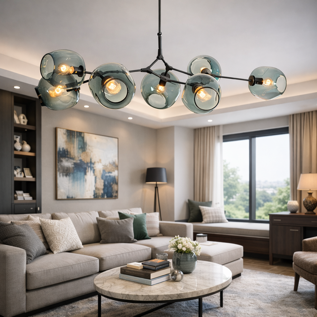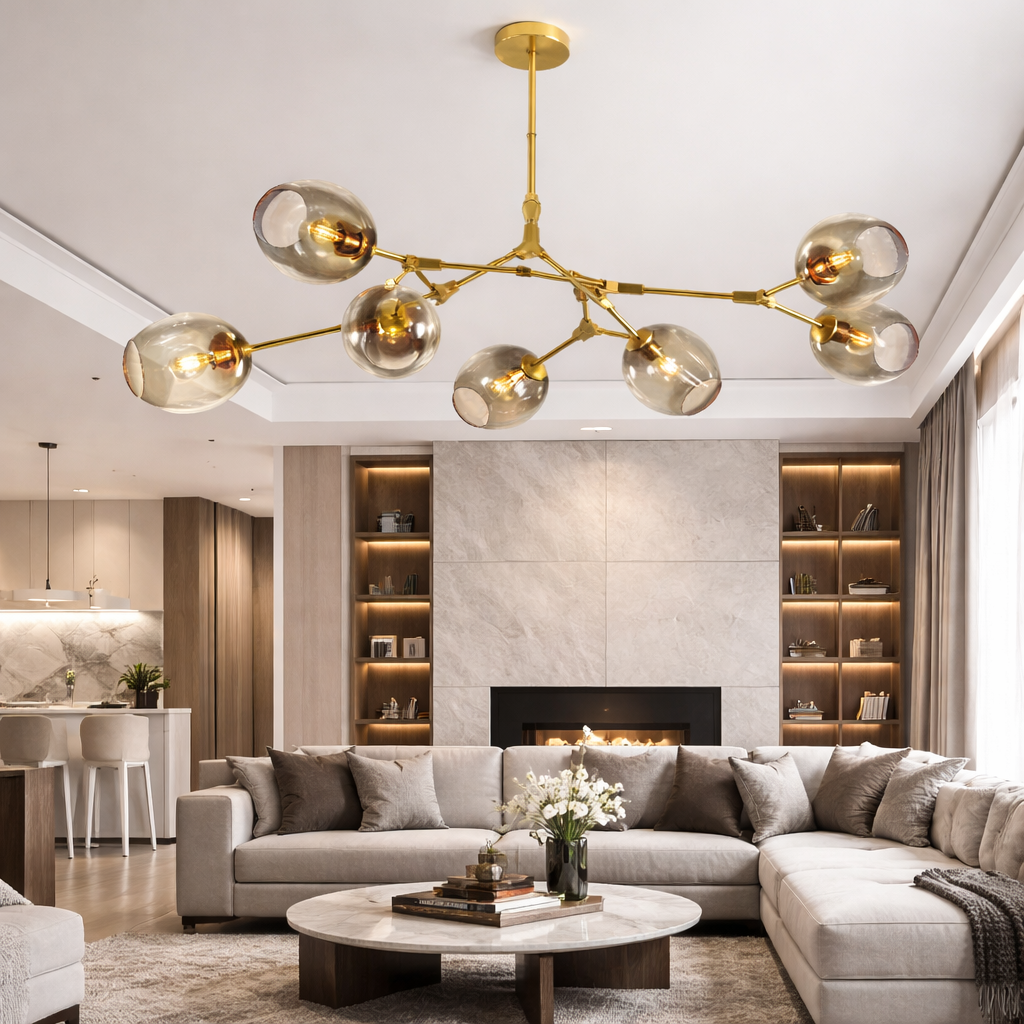 Inspiré par la géométrie céleste, le Lustre Nébula allie une ingénierie de précision et une esthétique contemporaine. Sa structure robuste en fer, traitée par un processus d'oxydation anodique, garantit une résistance exceptionnelle contre l'érosion et le temps. Grâce à ses globes en verre soufflé à haute transmittance, il diffuse une clarté douce et uniforme, imitant la lumière naturelle pour un confort visuel total. Son montage semi-encastré et ses multiples tailles disponibles en font une solution d'éclairage polyvalente pour transformer radicalement l'atmosphère de vos grands espaces de vie.