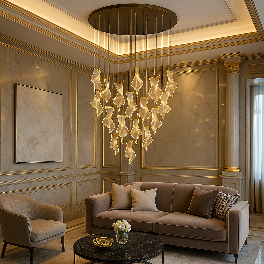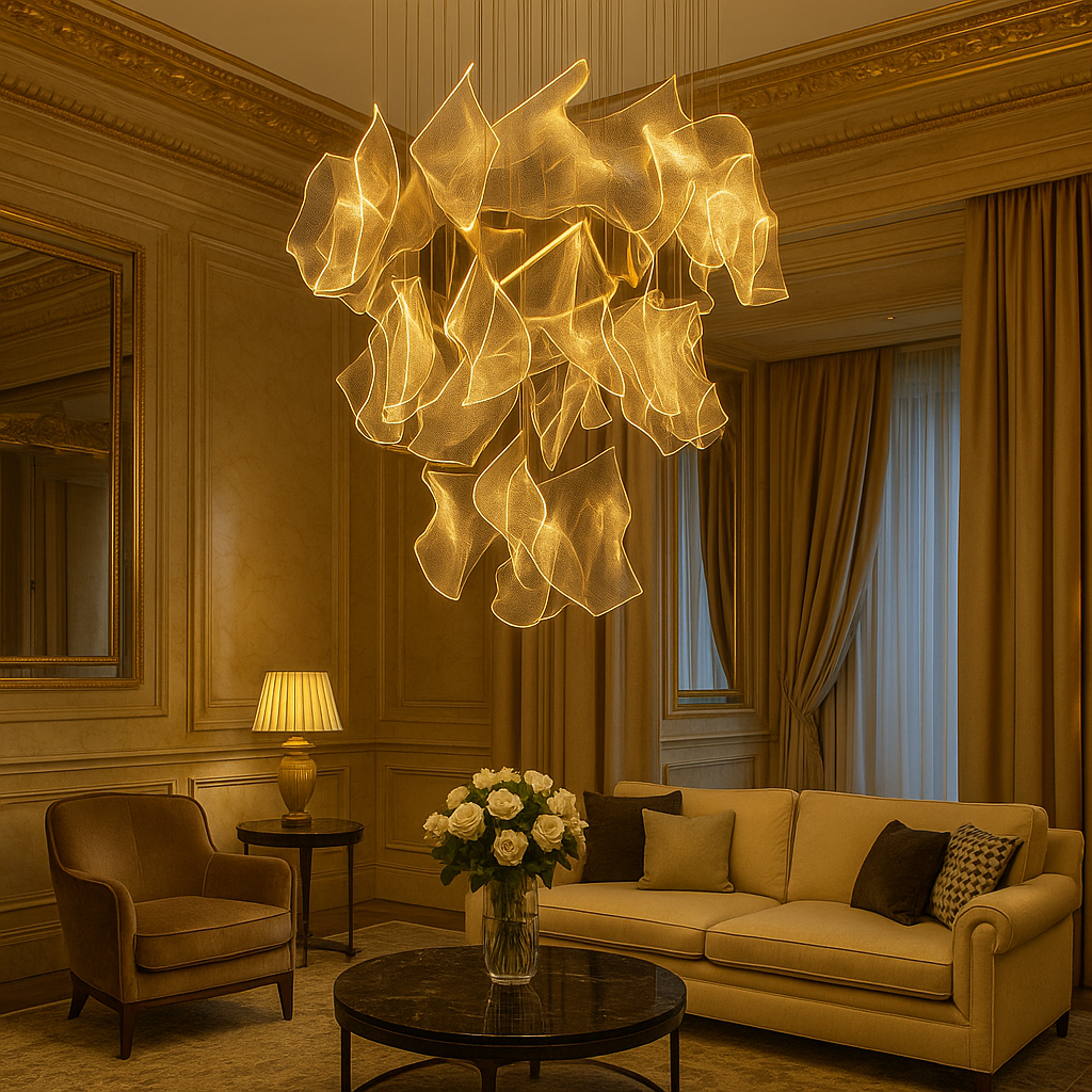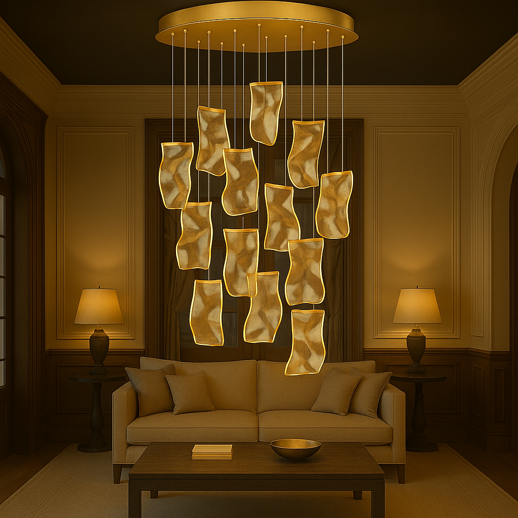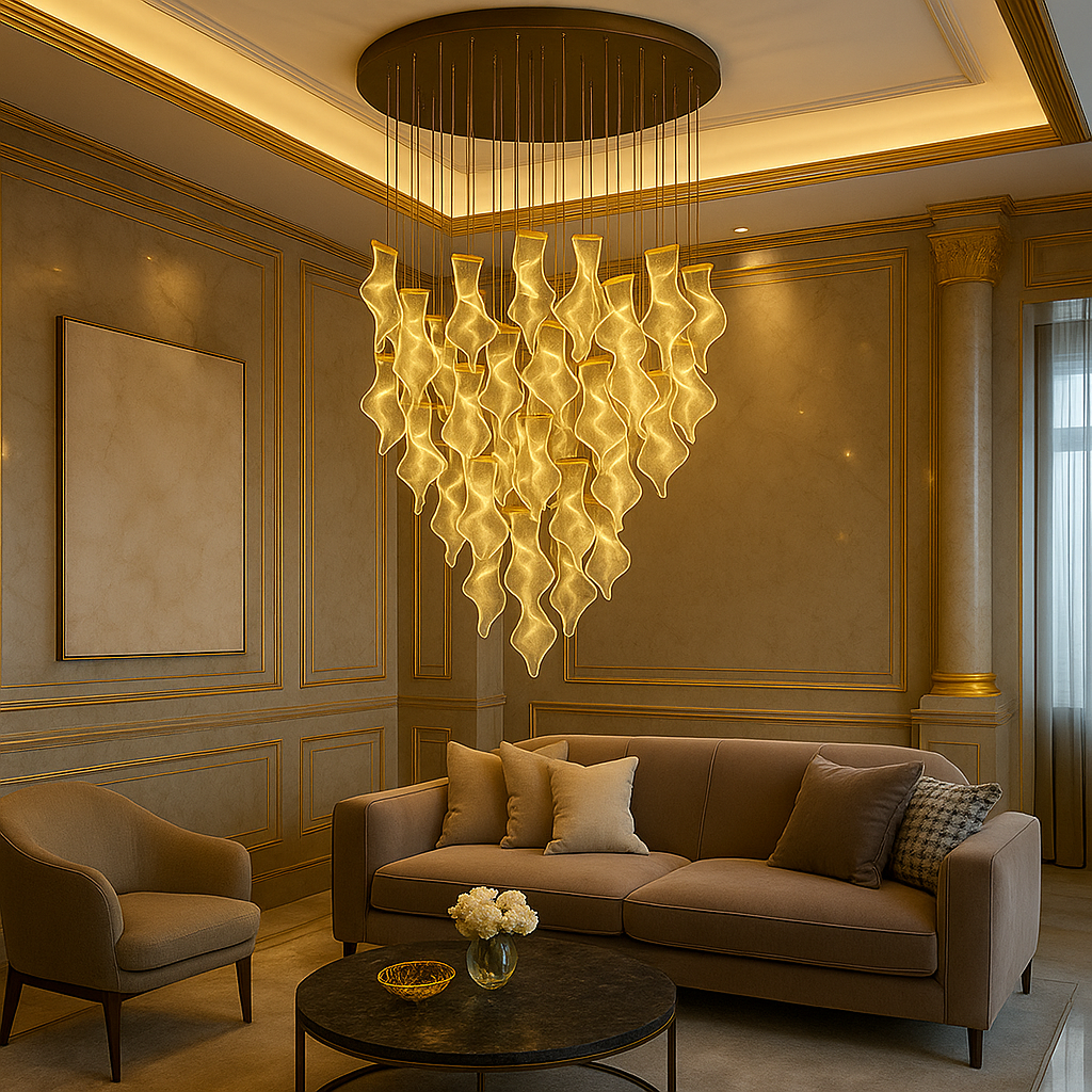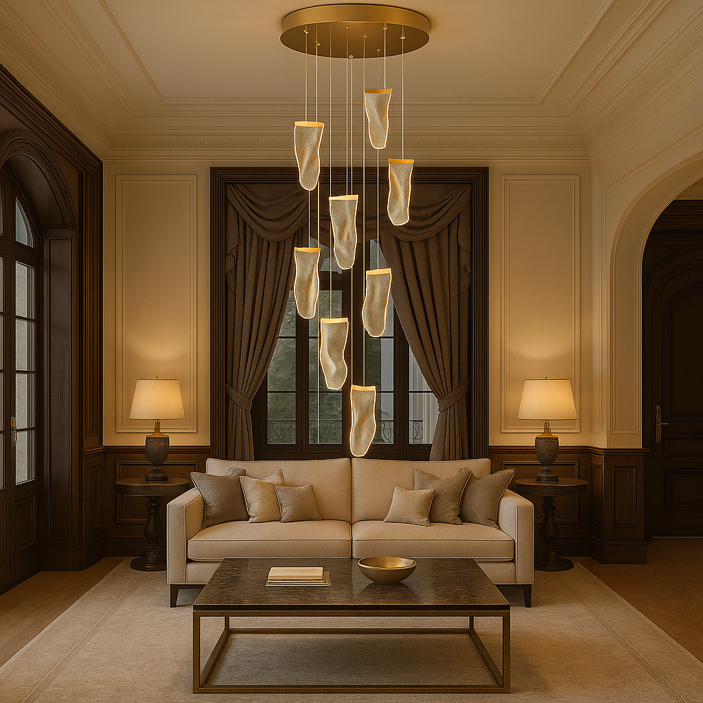 DEMANDER UN DEVISLa Suspension Cascade Cristal est un luminaire d’exception au design vertical et aérien, inspiré des cascades naturelles. Ses modules de cristal torsadé diffusent une lumière dorée, chaleureuse et raffinée, créant un effet de chute lumineuse spectaculaire. Idéale pour un salon majestueux, une salle à manger contemporaine ou un grand hall, elle apporte profondeur, luxe et modernité à tout espace haut de plafond.