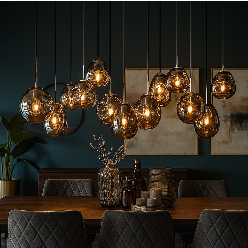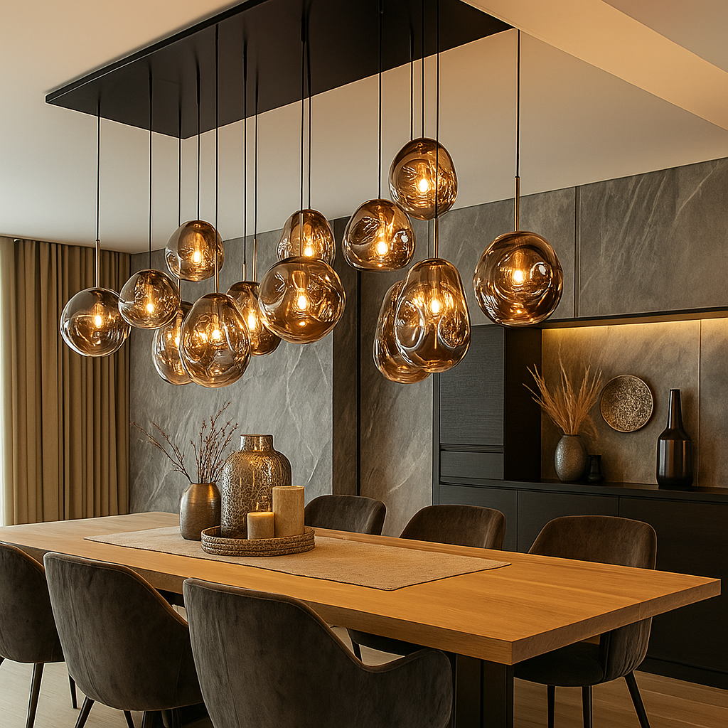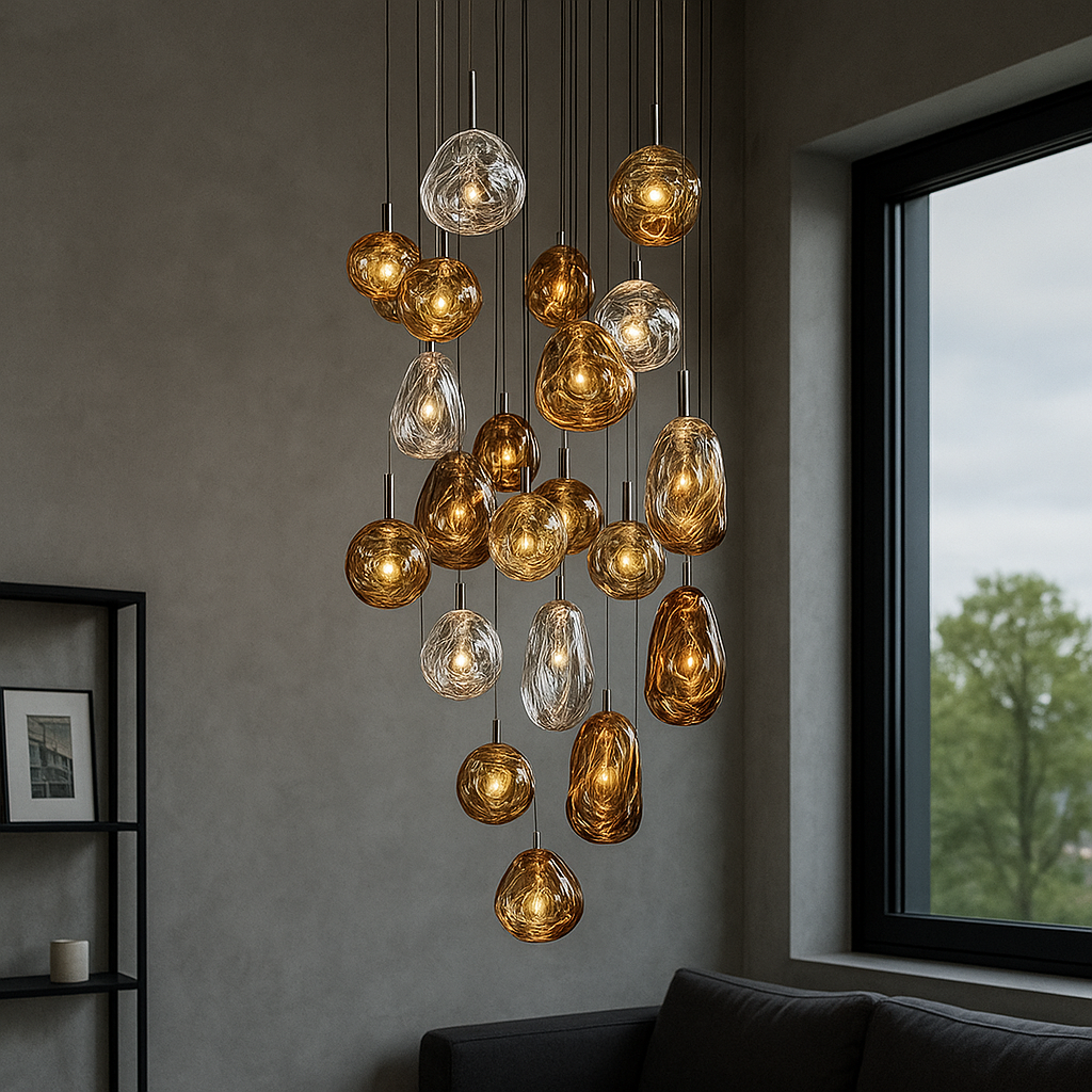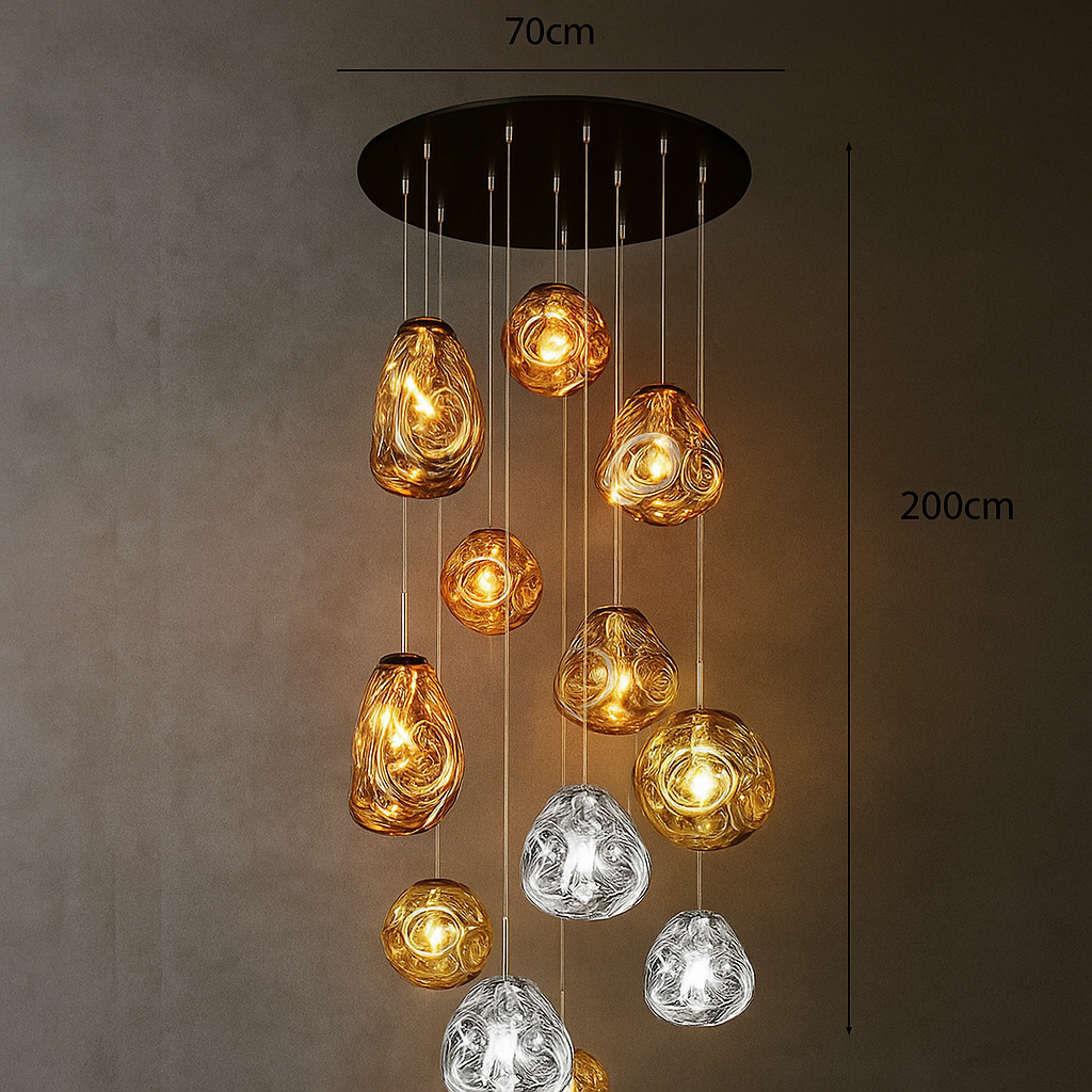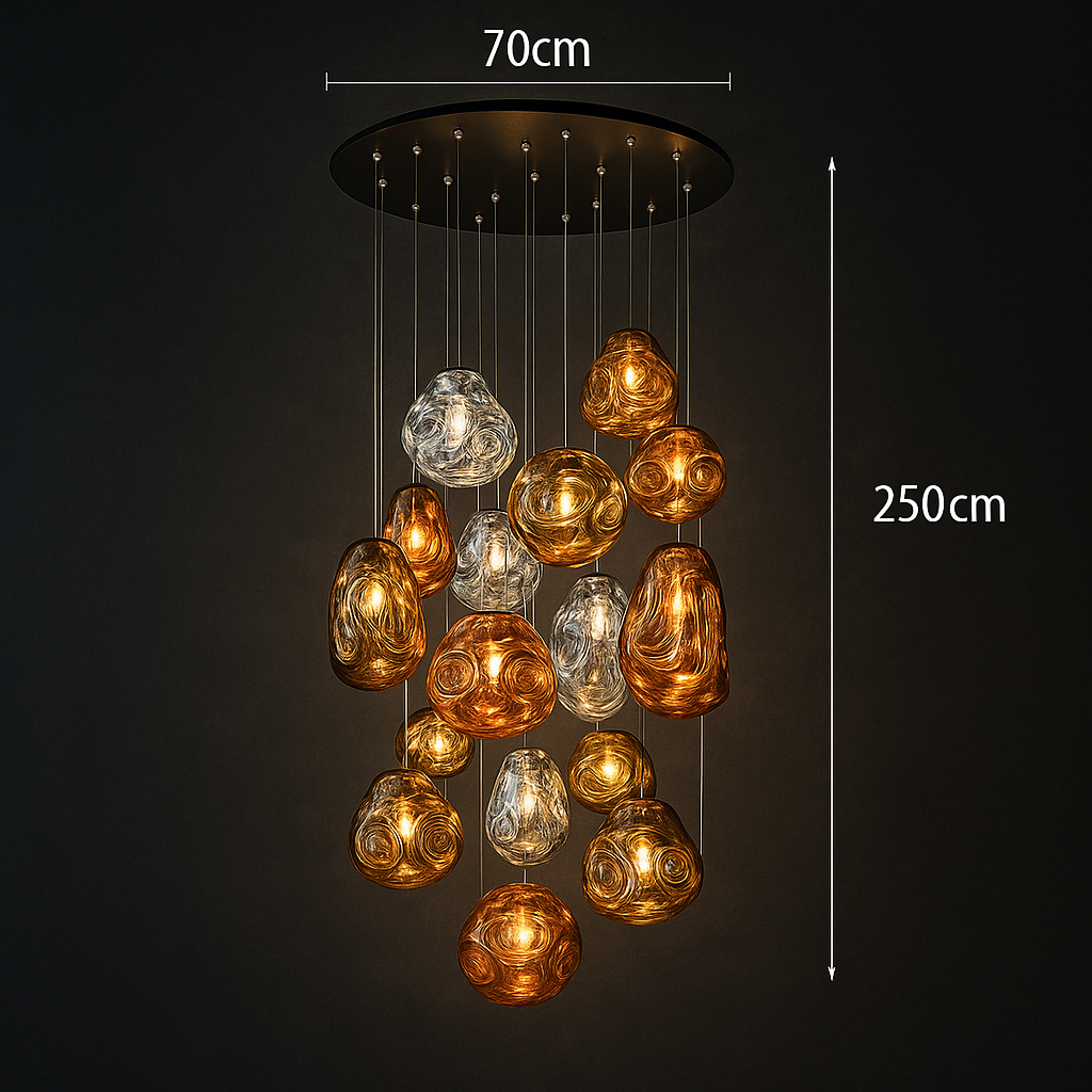 DEMANDER UN DEVISLa Suspension Galaxie Royale est un luminaire spectaculaire conçu pour magnifier les grands espaces avec une esthétique céleste. Ses sphères en verre soufflé, suspendues en cascade, diffusent une lumière douce et raffinée rappelant des planètes en apesanteur. Grâce à ses options d’éclairage (blanc chaud, blanc froid, 3 couleurs ou version dimmable), elle s’adapte à toutes les ambiances, du chaleureux au contemporain. Idéale pour un salon spacieux, un hall d’hôtel ou une chambre haut de gamme.