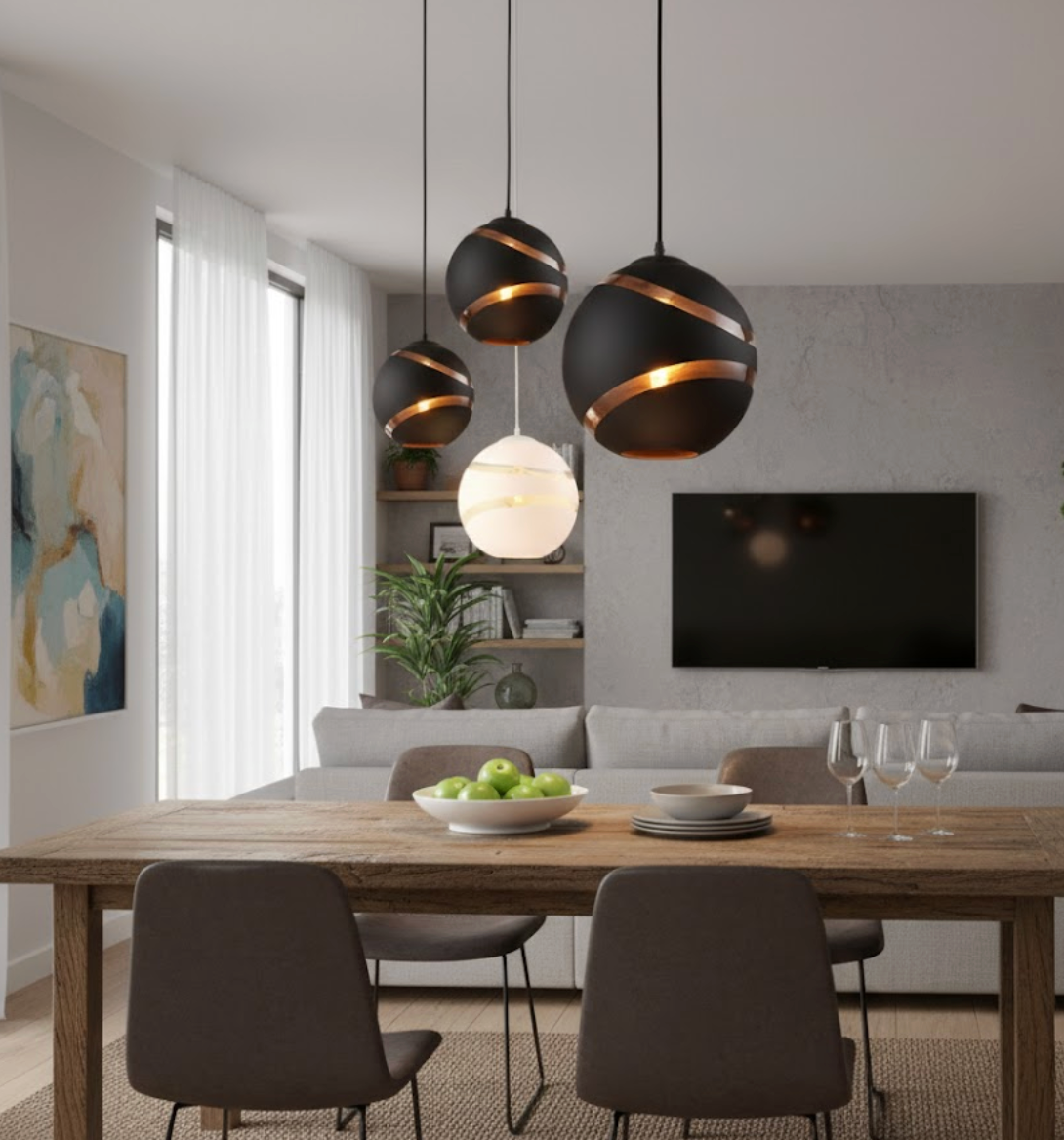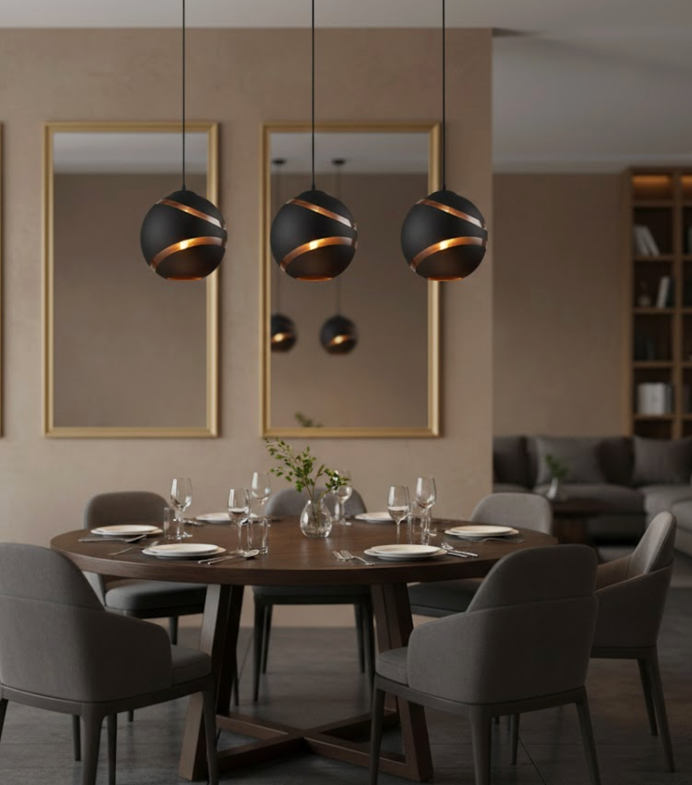 La Suspension Sphère Cuivrée redéfinit le luminaire contemporain avec une silhouette d'une pureté absolue. Alliant une structure en fer forgé noir mat et des rainures cuivrées élégantes, elle apporte une touche de luxe industriel à votre intérieur. Ce luminaire n'est pas qu'une simple source de lumière, c'est une pièce de design qui souligne l'esthétique de votre chambre ou de votre salon avec une présence sculpturale dès qu'elle s'illumine.